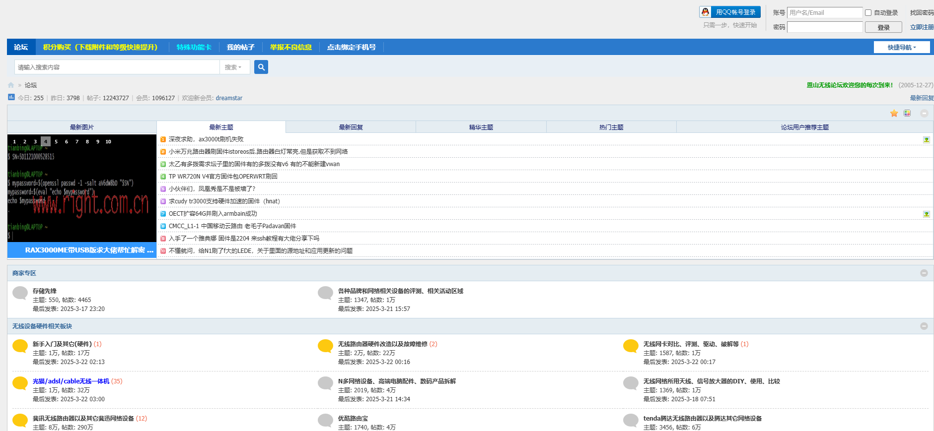 恩山无线论坛是一个专注于 无线网络技术 交流的中文社区,涵盖无线设备硬件、软件、网络智能设备、商品交易等多个板块,为无线技术爱好者和专业人士提供高质量的讨论与分享平台。